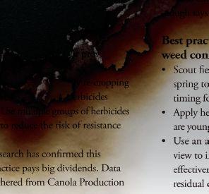 Information from Saskatchewan agriculture provides guidelines on disease thresholds for spraying susceptible varieties. Faye Dokken-Bouchard, provincial plant disease specialist, recommends the following strategy: “at the jointing to boot stages, spray if rust is found on at least five per cent of plants (incidence) with at least three per cent of flag leaf tissue affected (severity). at the heading to flowering stages, spray if there is at least 10 per cent rust incidence and five per cent severity. at the milk stage, and only if the fungicide’s pre-harvest interval (pHI) allows, spray if there is at least 20 per cent rust incidence and 10 per cent severity. If no pustules are observed, spraying is not necessary. If rust is too severe to control (80 per cent incidence and 70 per cent severity), spraying is not recommended.”