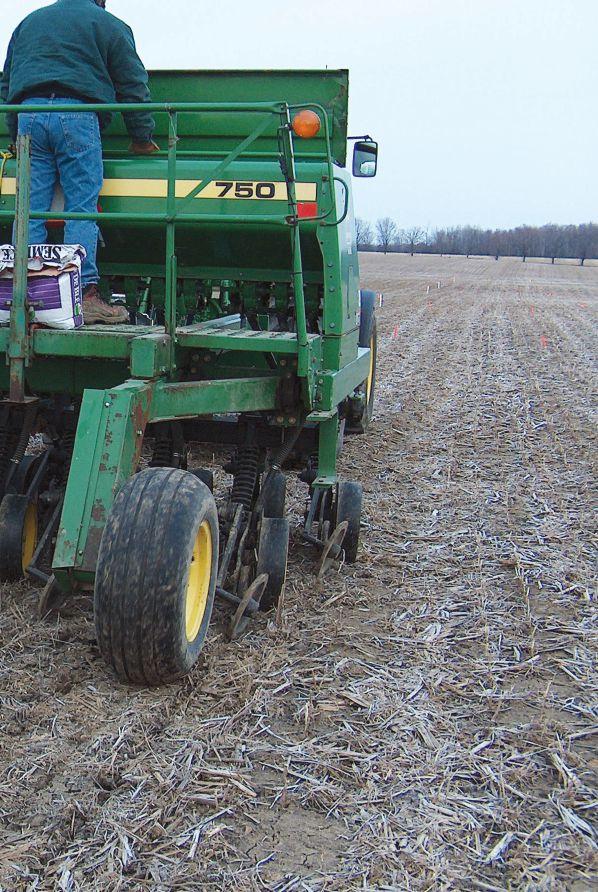 Successful dormant seeding is dependent on the right environmental conditions. The field needs to be free of deep, wet snow. Uniformly distributed dry snow is oK. The soil needs to be cold enough so the seed won’t germinate, but not so frozen that you can’t properly plant the seed. at the research Farm, dormant seeding is typically done in late november or early December.