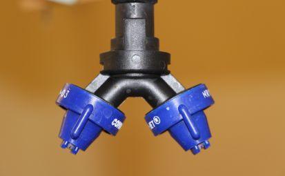 BOTTOM: Twin fan nozzles, which are becoming more common for late season spray applications.