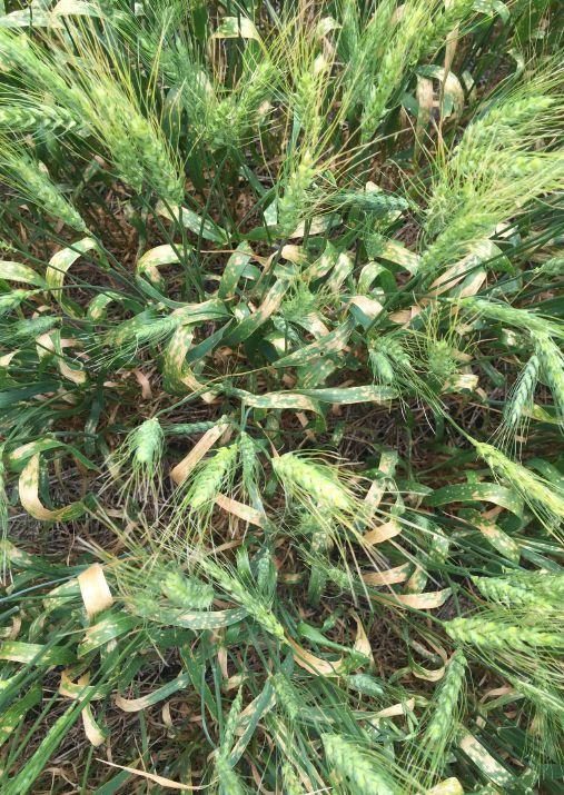 Field trials were included to validate the lab results. The first field season was planned for 2015, but with the very dry growing conditions later in the season, project co-operators opted against late season applications. In 2016, four field-scale trials were successfully completed and the data is now being analyzed. Part of the project included an evaluation and incidence rating of cereal diseases, including Fusarium head blight and leaf spot complex, which are being completed by Kutcher’s research lab.