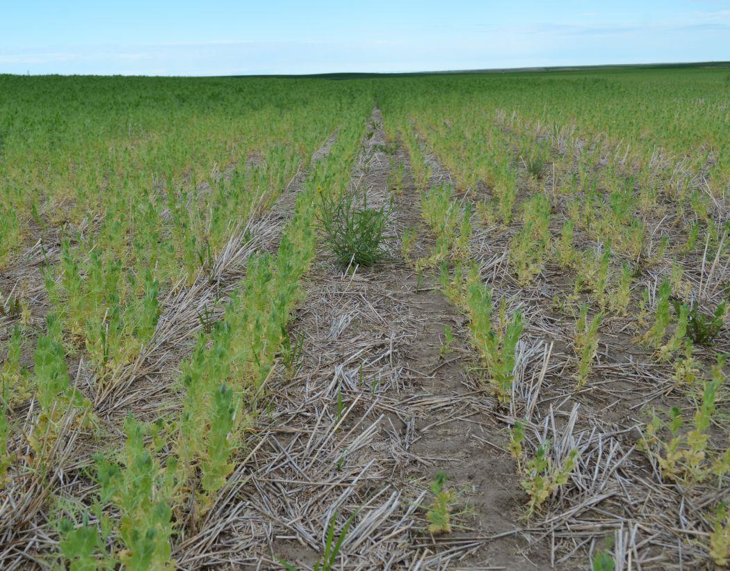 One of the issues with marrowfat pea varieties is that they tend to have poor standability. So Kruger is conducting field trials to see whether intercropping with mustard might help. He explains, “The goal of the mustard is to hold the marrowfat pea upright so it does not prematurely lodge but is able to reach its yield potential.” The mustard seeding rate he tried in 2017 was too high, so he plans to experiment with some lower rates in 2018.