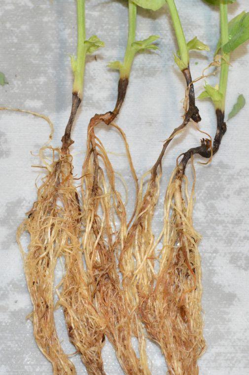Marrowfat pea production is similar to production of other dry peas. “Although breeders have improved yields, marrowfat peas still tend to yield a little less than regular peas,” Kruger notes. “That has become more of an issue recently because of the problem we’re having with root rots in pulse production, especially in peas. Aphanomyces root rot is rearing its ugly head and it is pretty widely distributed. A lot of that has to do with crop rotation issues and heavy rainfall. Field peas just don’t handle heavy rainfall really well; they can’t tolerate wet feet.” Aphanomyces root rot thrives in soggy conditions, and peas are one of the pathogen’s favourite hosts.