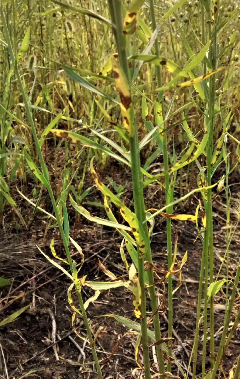ABOVE: Pasmo results in defoliation and weakening of the stems, leading to stem breakage and lodging.