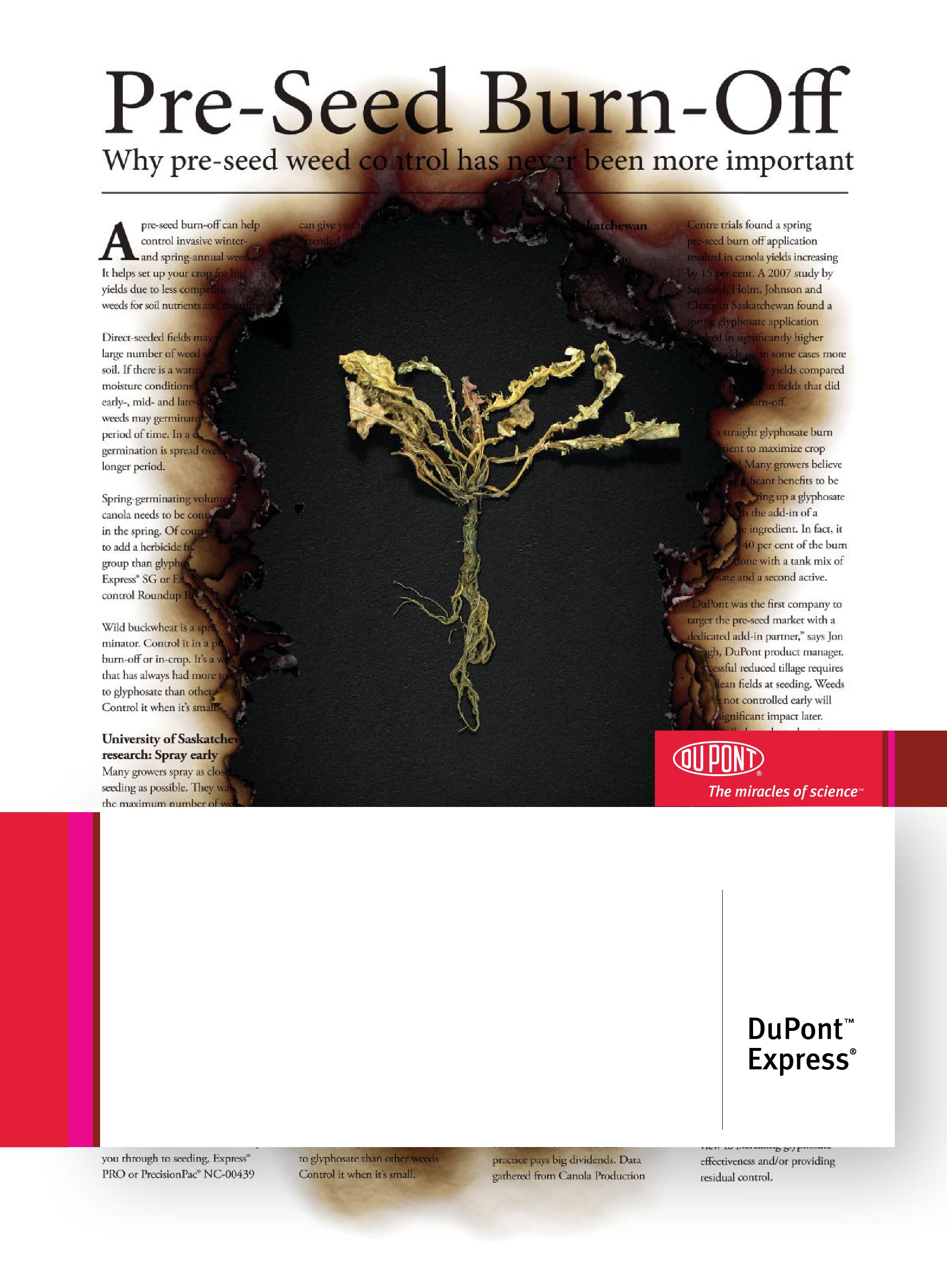 Visit expressvideo.dupont.ca to see Express® in action – torching tough weeds like dandelion and volunteer canola right down to the roots, so they can’t grow back.