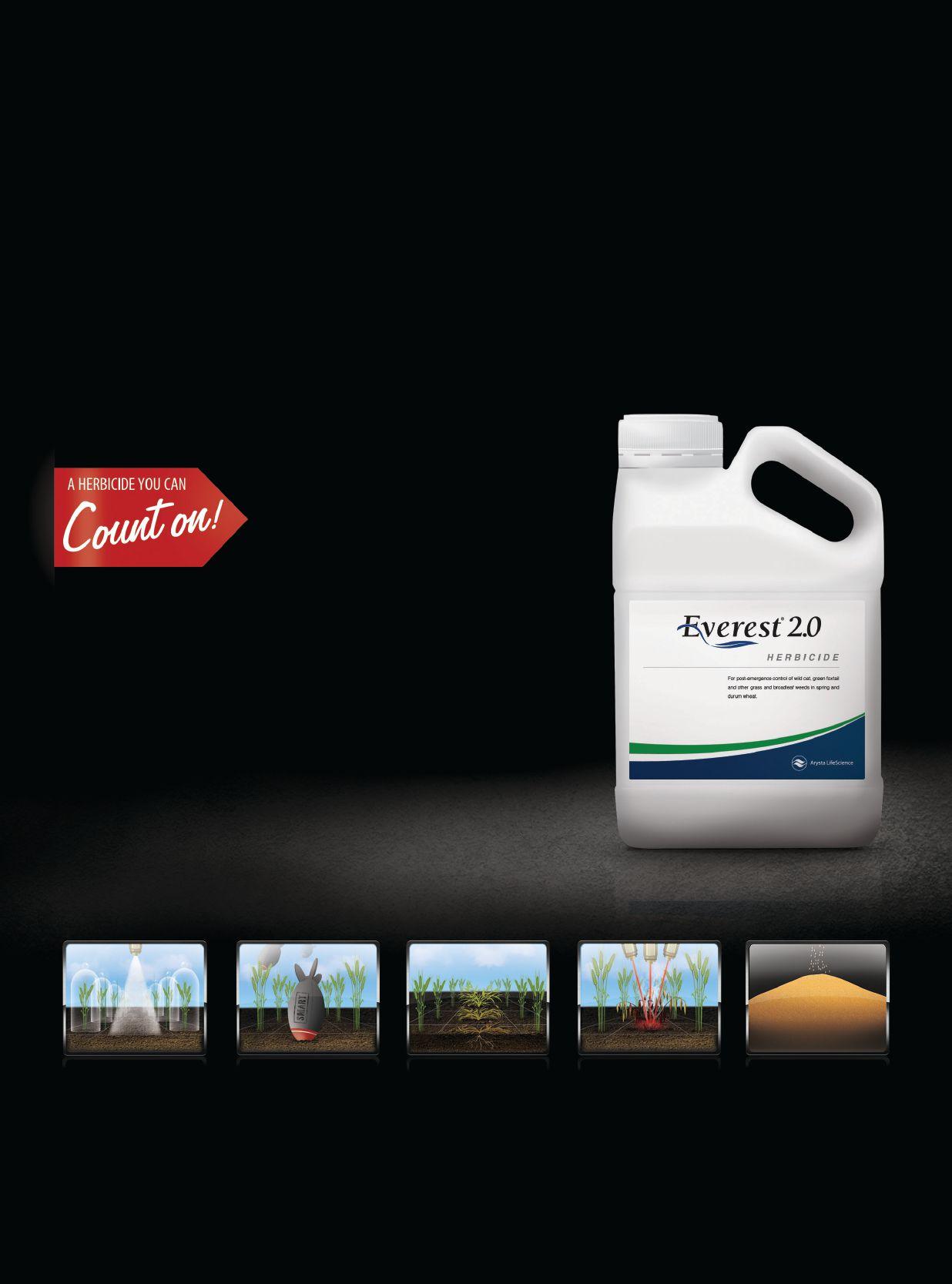 It’s rare to find a herbicide you can count on for long-lasting stopping power that’s also safe on wheat. The advanced safener technology in EVEREST® 2.0 makes it super selective for best-in-class crop safety. Safe on wheat, it’s also relentless on weeds, giving you Flush-after-flush ™ control of green foxtail, wild oats and other resistant weeds. And a wide window for application means you can apply at your earliest convenience. It’s time you upgraded your weed control program to the next generation: EVEREST 2.0. To learn more, visit everest2-0.ca.