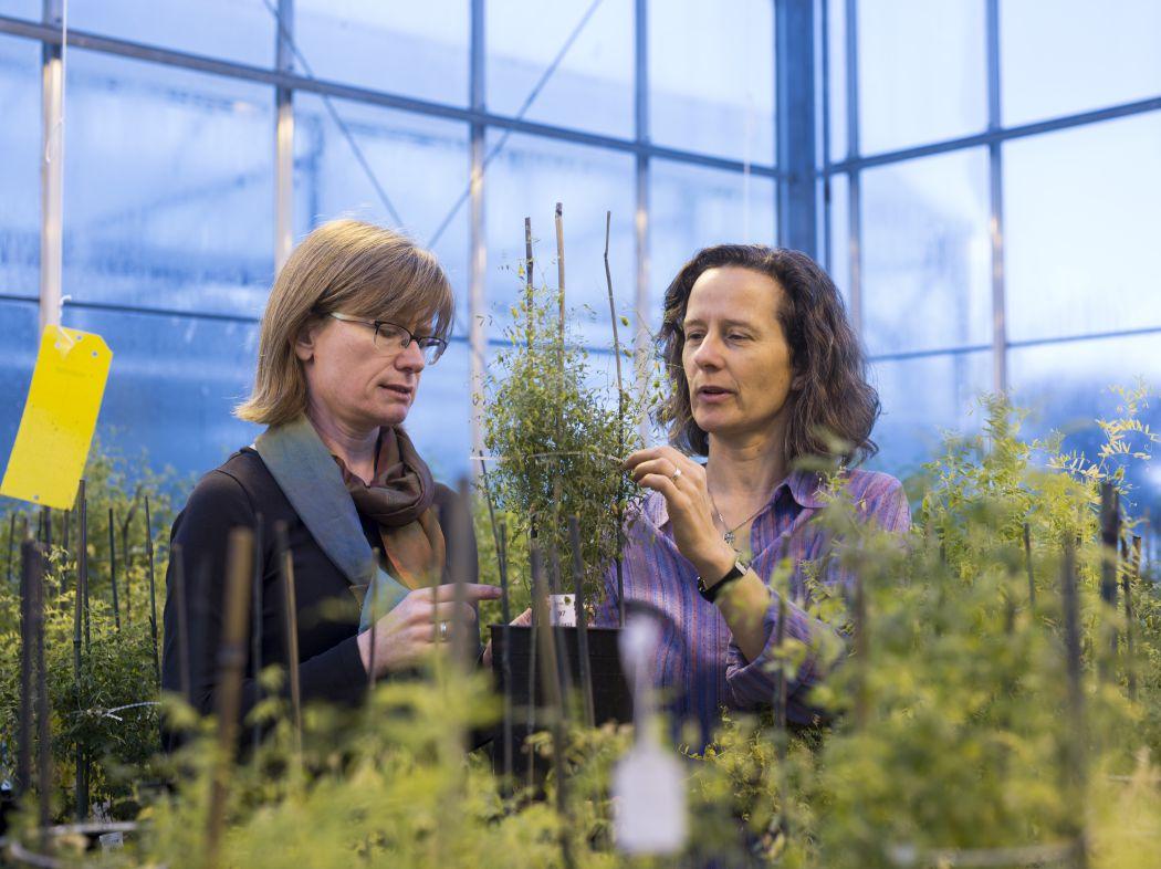 ABOVE: Sabine Banniza (right, shown with her U of S colleague Kirstin Bett) is working to develop lentils with resistance to three fungal diseases.
