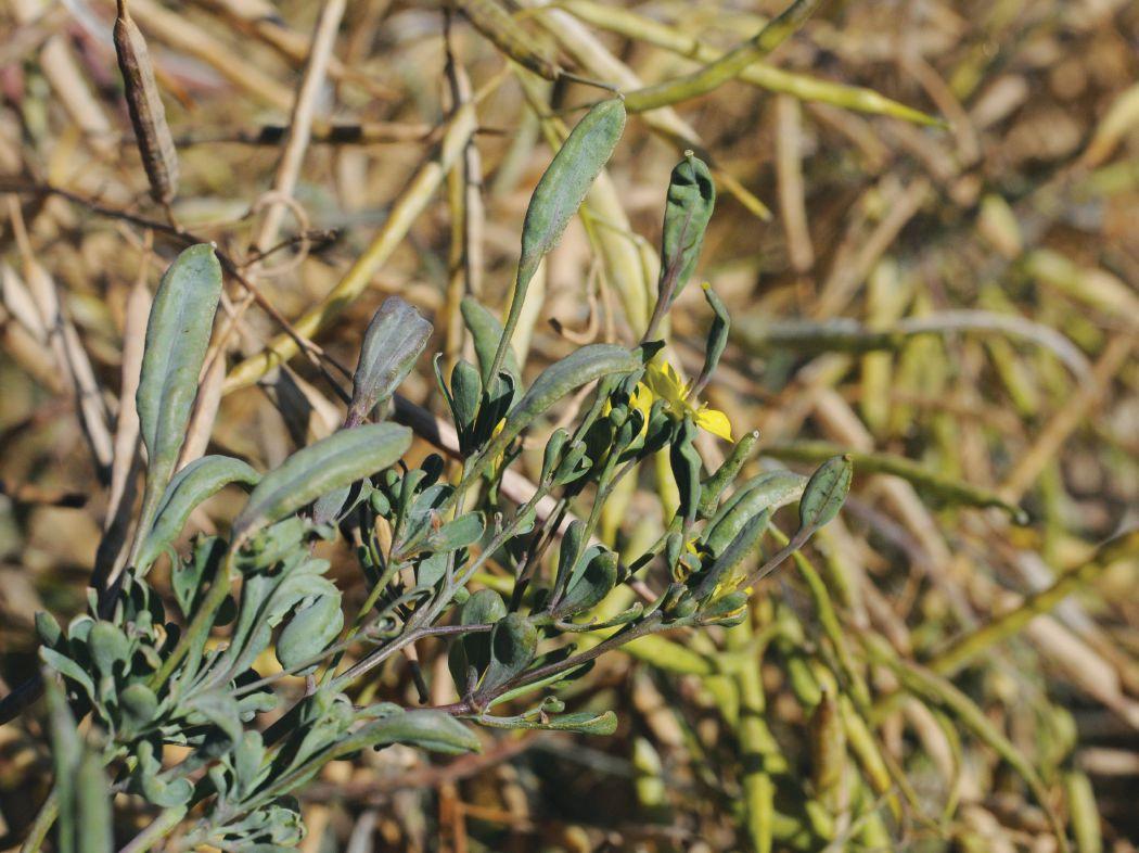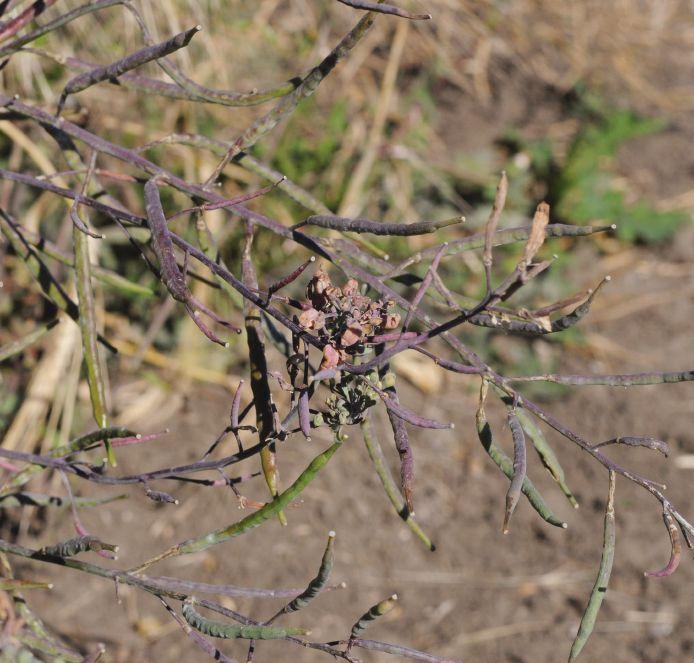 In canola, infected plants show a number of symptoms, including chlorosis, stunting and poor growth. a common, widespread symptom in 2012 was sterile, bladder-like pods and small witches’broom flower heads. Infection can cause poor seed set and poor seed development with shrivelled and shrunken seed.
