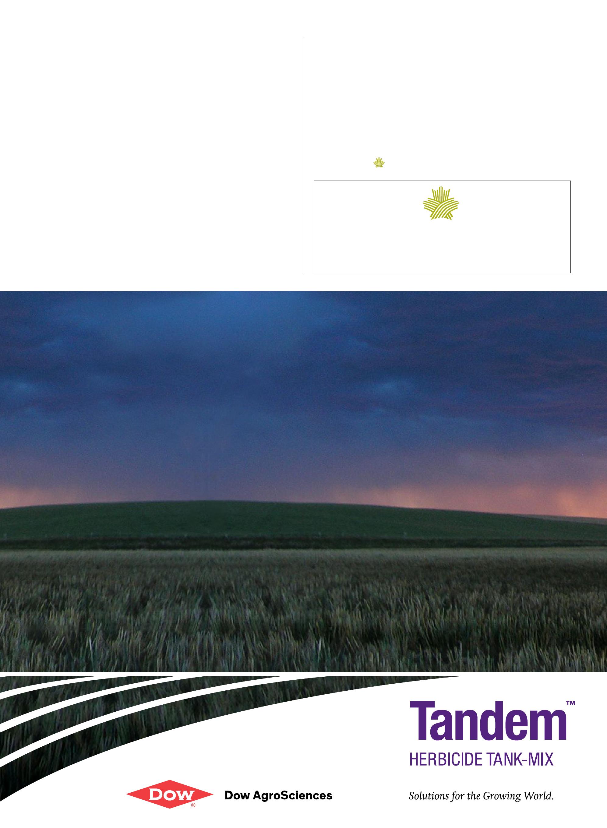 Control problem grass and broadleaf weeds in wheat – with the easier, more flexible, one-pass solution. TandemTM delivers convenience and Multi-Mode of Action resistance management. For exceptional control of wild oats, kochia, cleavers, chickweed, hemp-nettle and more. BULK UP and save. Elevate your performance. Talk to your Tandem retailer today. Visit www.dowagro.ca. and save Before march 20th.