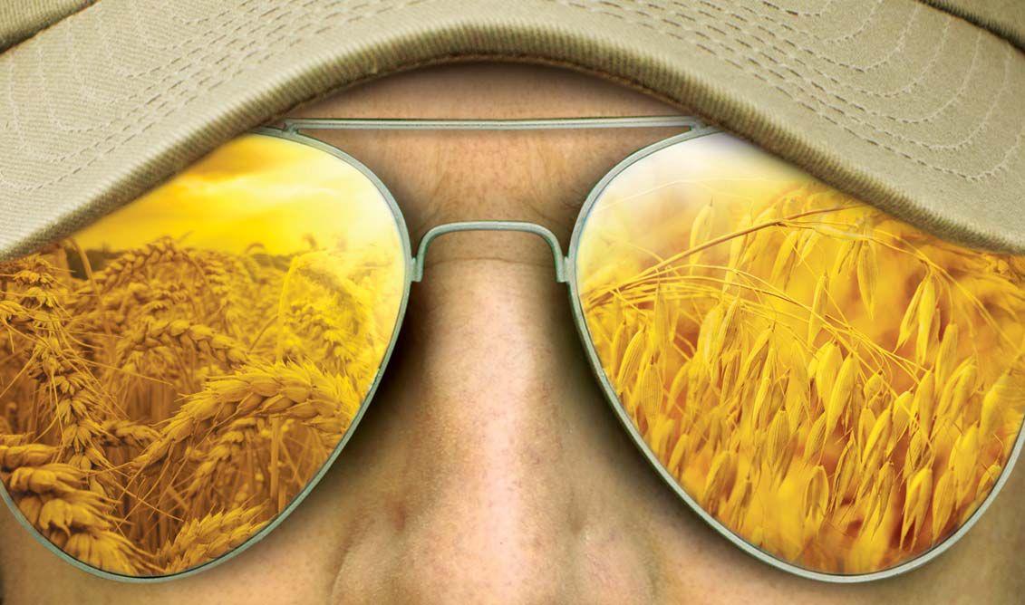 INSET: Bryan Corns grows six triticale varieties and sells the pedigreed seed into various markets.