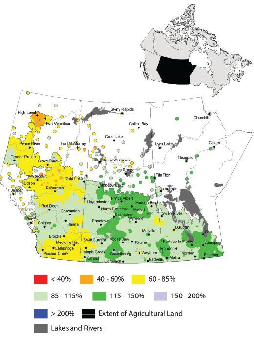Percent of Average Precipitation (Prairie Region). April 1, 2015 to October 31, 2015