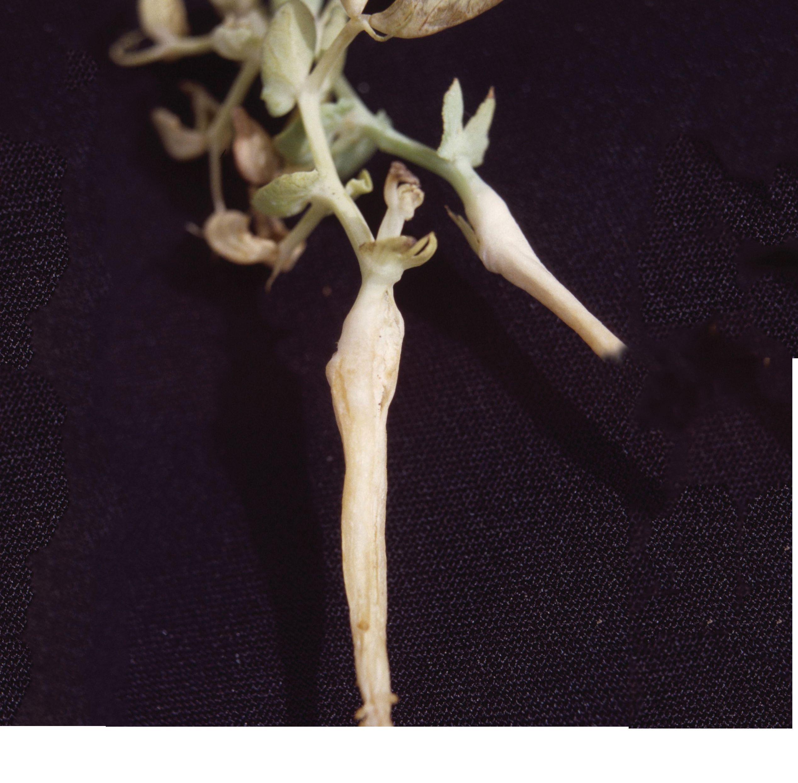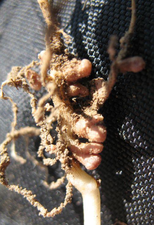 TOP: Clopyralid carryover suspected in the overproduction of undifferentiated (callus) tissues in the lower stem/upper root to the point where the stem splits.