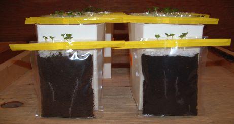 Another soil bioassay uses sugar beet as an indicator plant for sulfentrazone and pyroxasulfone. Soil is gently packed into a two ounce Whirl-Pak bag to form a layer approximately eight cm high, six cm long and one cm wide. Six sugar beet seeds are planted at a two mm depth and grown for six days. In this case, sugar beet shoot length was used as an indicator of herbicide presence compared to a similar soil free of herbicide residue.
