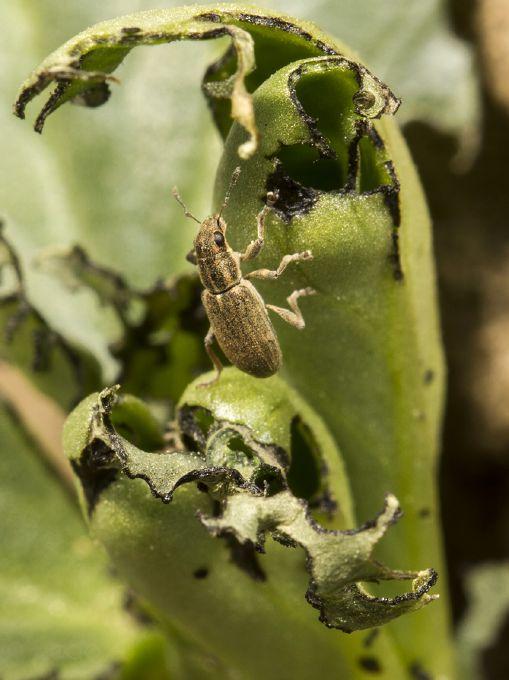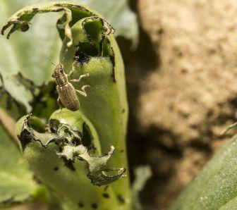 In Saskatchewan’s 2016 pea leaf weevil survey, and in additional reports, the pest has a much wider distribution to the east and north than previously known. The typical damage (notching) to the leaves of pea plants was noted southeast of Moose Jaw. Pea fields in the Outlook area had light levels of feeding, but fababean plots at the irrigation centre showed potentially economic levels of damage. There were also pea and fababean fields with high levels of feeding near
