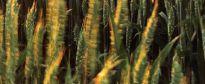 Disease progression of Aphanomyces root rot in peas inoculated with zero (right) up to 1,000 (left) oospores per gram of soil.
