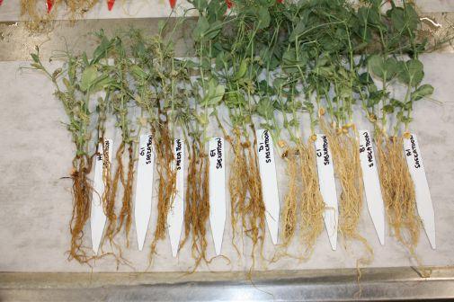“The other main root rot pathogen of concern besides A. euteiches, is Fusarium spp, which is widely distributed and includes both beneficial and pathogenic disease-causing species that can often be difficult to distinguish,” Chatterton says. “Both root rot pathogens are a concern individually, however when they occur together, the disease symptoms are worse than either disease on