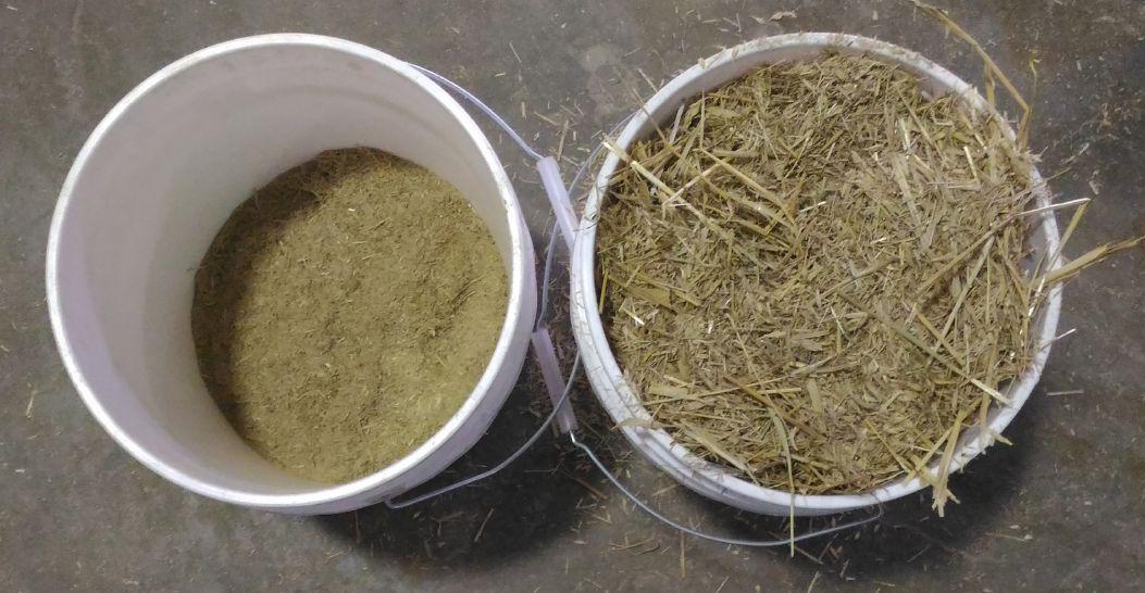 Barley chaff before (right) and after (left) processing in the Harrington Seed Destructor.