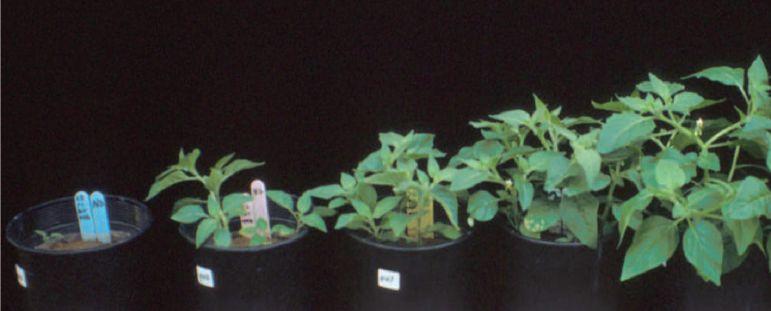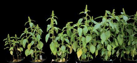 ABOVE & INSET: Greenhouse experiments to evaluate weed species’ response to phosphorus applications of 0, 10, 20, 30, 40 and 60 kg/ha found differing patterns. For instance, hairy nightshade tended to grow more and more with each increase in phosphorus, while kochia’s growth tended to plateau around 30 kg/ha.