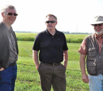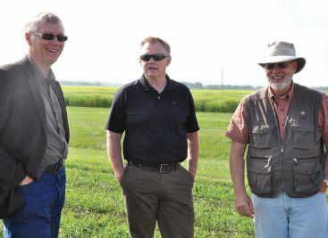 INSET: Helm (far right) with Alberta’s Agriculture Minister Verlyn Olson and Deputy Minister John Knapp in July 2012