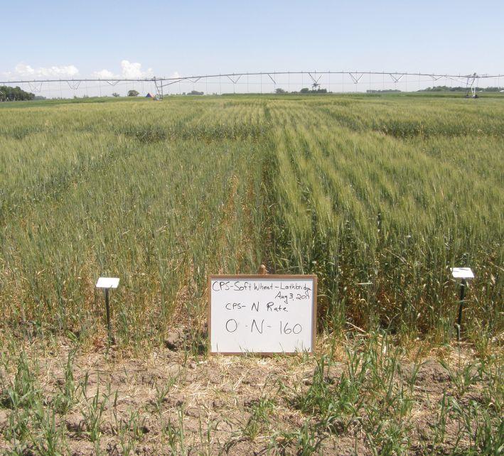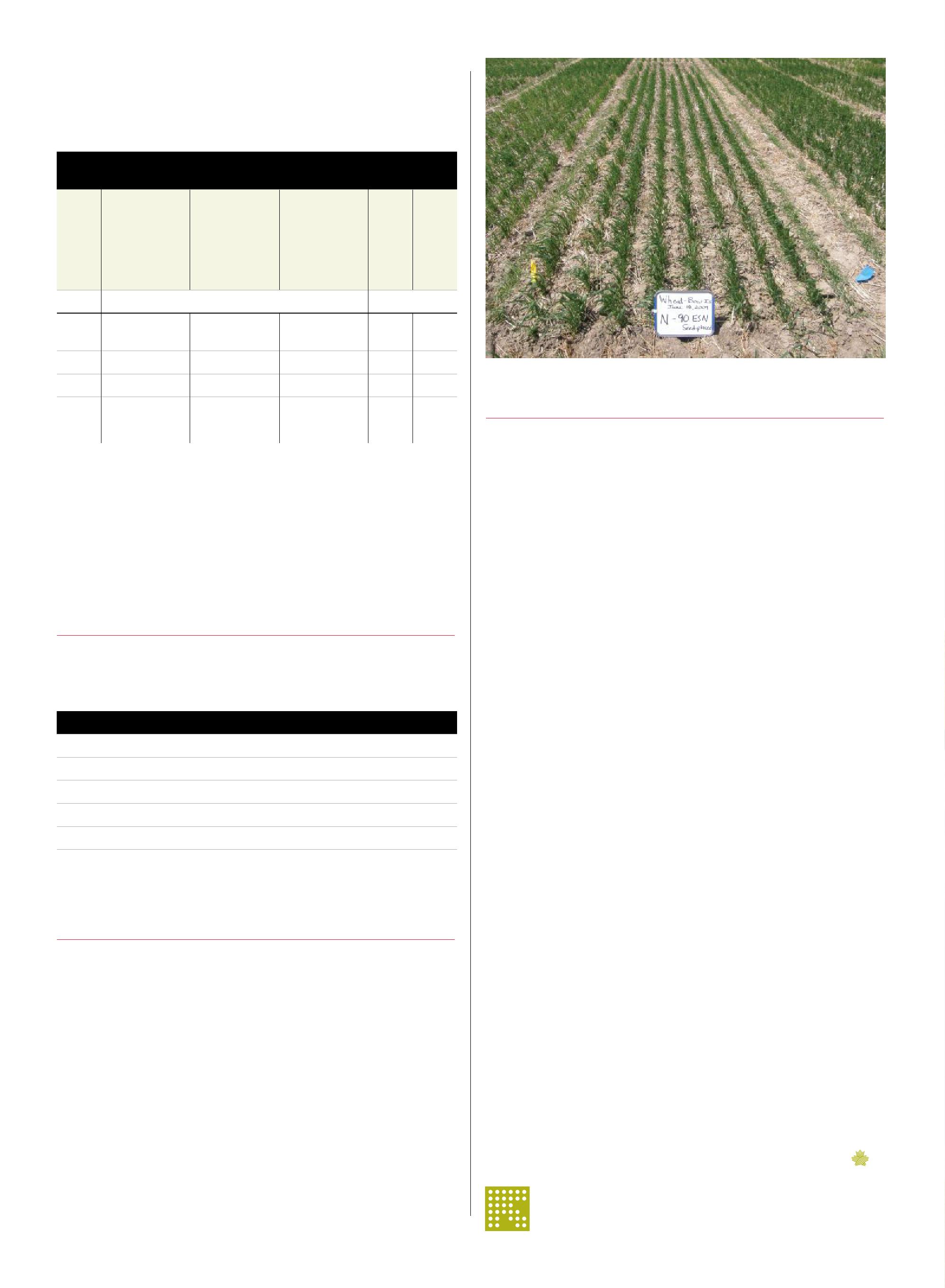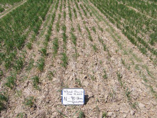 ABOVE: 90 kg/ha (81 lb/ac) of N as ESN seed-placed with wheat on a Brown soil at Bow Island
