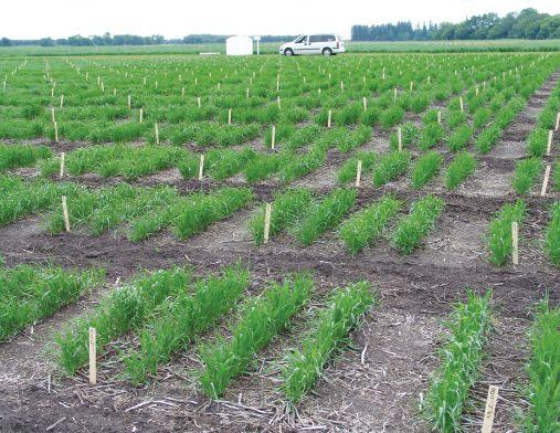 The Breton plots had a pH of 6.2 and organic carbon of 1.5 per cent, and the Ellerslie plots had a pH of 6.1 and an organic matter content of 4.8 per cent. The plots studied were established in 1979 and results were analyzed up to 2009. For the first 16 years, the plots were in continuous barley, and then in a canola, barley, wheat, wheat, canola, triticale, peas, barley, canola, triticale, peas, wheat, wheat (barley), barley, barley rotation running up to 2009. No-till/direct seeding began in 1979, and the conventional till treatment started in 1980.