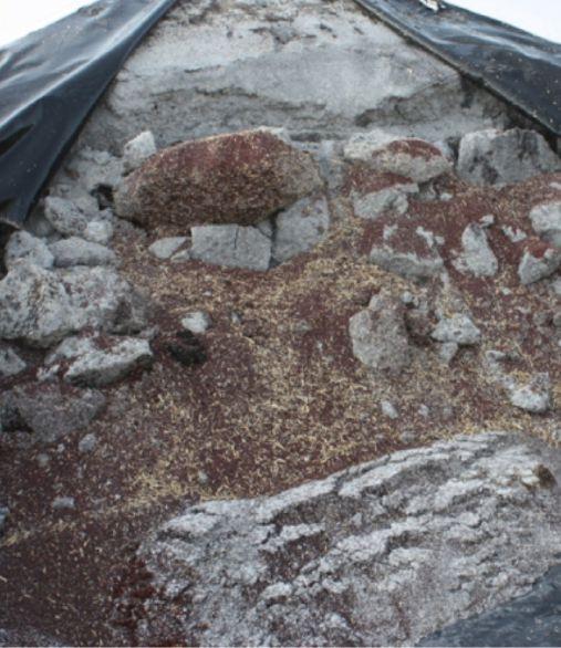 between the rows before the canola plants mature. The trays are usually removed right before harvest for analysis; it’s straightforward to separate the losses into pod drop and seed shatter. He notes, “It’s a pretty good method but relatively time consuming.”
