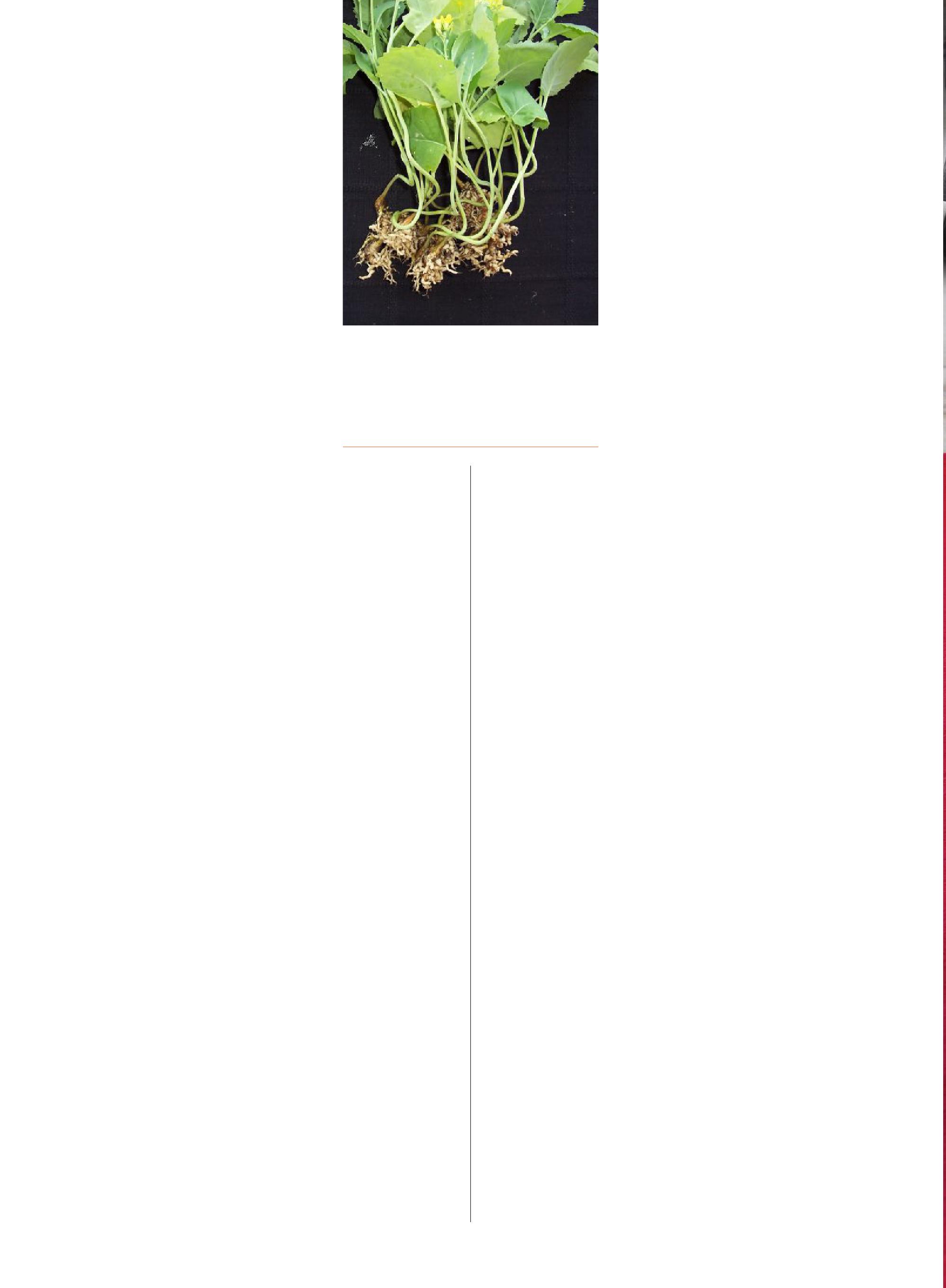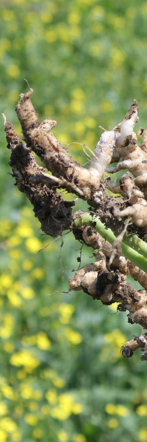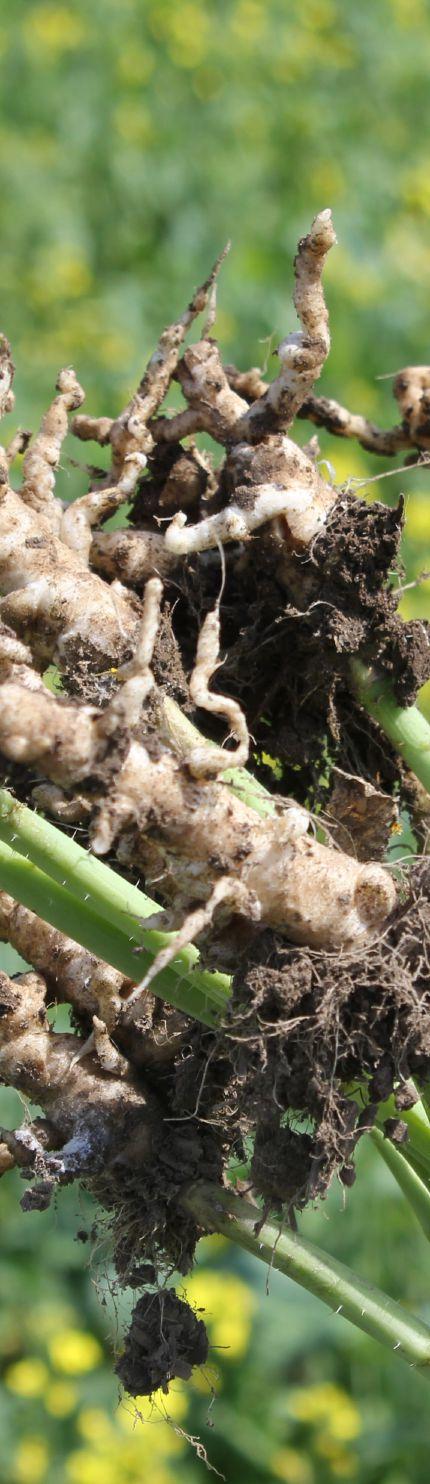 small patches. “Once you have clubroot in your field, one of the key management practices is to not provide it with any host where it can complete its life cycle. When it completes its life cycle, it produces so many resting spores in a season that it can become a real problem in a hurry. So plant a non-host crop and control any weeds that could be hosts,” Harding says. “If you grow a canola crop, make sure it’s resistant, and be sure to use resistance stewardship, mainly a rotational break between canola crops of at least three years.”