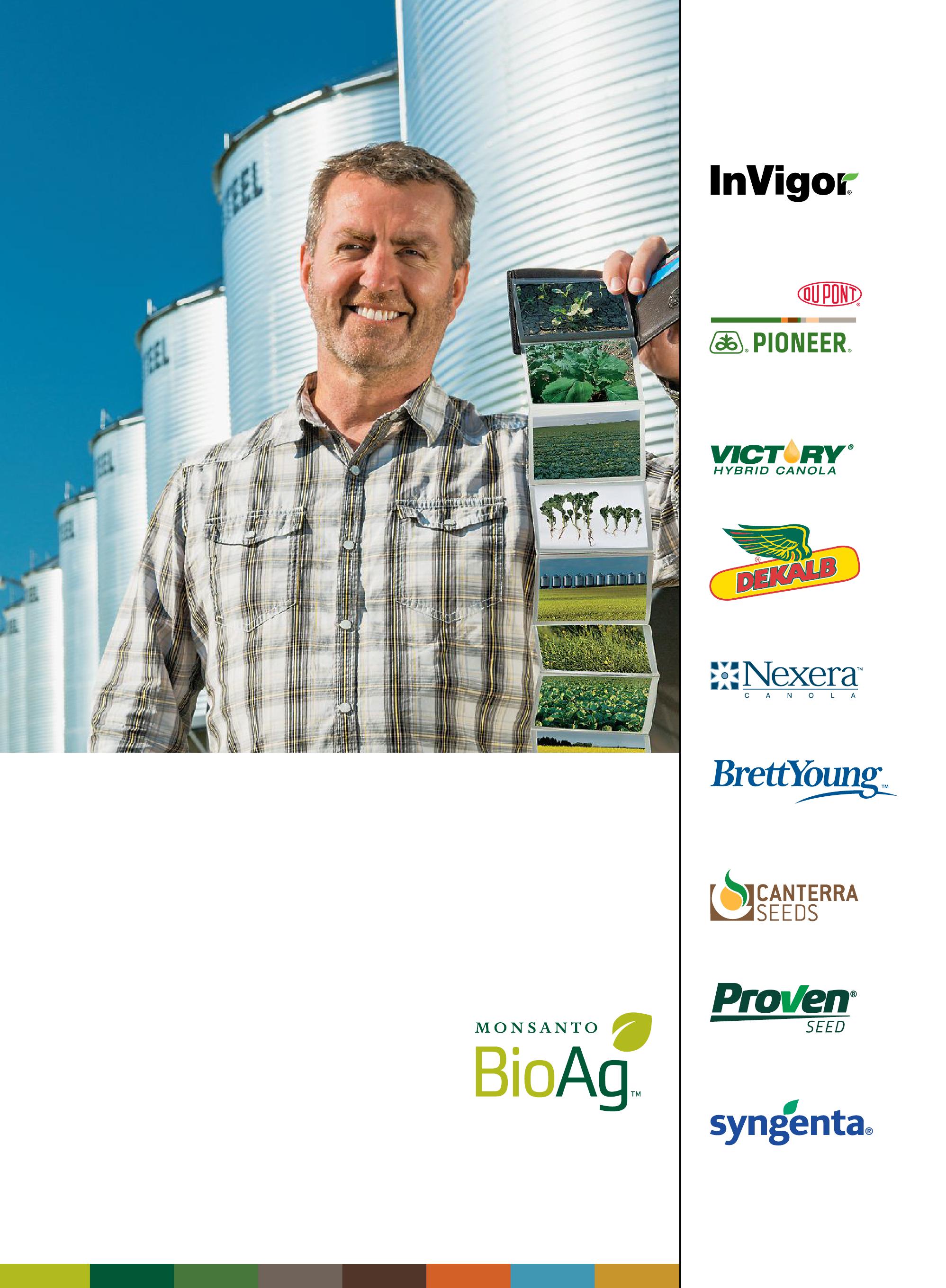 ALWAYS READ AND FOLLOW PESTICIDE LABEL DIRECTIONS. Roundup Ready® crops contain genes that confer tolerance to glyphosate, the active ingredient in Roundup® brand agricultural herbicides. Roundup® brand agricultural herbicides will kill crops that are not tolerant to glyphosate. Acceleron® seed treatment technology for canola contains the active ingredients difenoconazole, metalaxyl (M and S isomers), fludioxonil and thiamethoxam. Acceleron® seed treatment technology for canola plus Vibrance® is a combination of two separate individually-registered products, which together contain the active ingredients difenoconazole, metalaxyl (M and S isomers), fludioxonil, thiamethoxam, and sedaxane. Acceleron® seed treatment technology for corn (fungicides and insecticide) is a combination of four separate individually-registered products, which together contain the active ingredients metalaxyl, trifloxystrobin, ipconazole, and clothianidin. Acceleron® seed treatment technology for corn (fungicides only) is a combination of three separate individually-registered products, which together contain the active ingredients metalaxyl, trifloxystrobin and ipconazole. Acceleron® seed treatment technology for corn with Poncho®/VoTivo™ (fungicides, insecticide and nematicide) is a combination of five separate individually-registered products, which together contain the active ingredients metalaxyl, trifloxystrobin, ipconazole, clothianidin and Bacillus firmus strain I-1582. Acceleron® seed treatment technology for soybeans (fungicides and insecticide) is a combination of four separate individually registered products, which together contain the active ingredients fluxapyroxad, pyraclostrobin, metalaxyl and imidacloprid. Acceleron® seed treatment technology for soybeans (fungicides only) is a combination of three separate individually registered products, which together contain the active ingredients fluxapyroxad, pyraclostrobin and metalaxyl. Acceleron and Design®, Acceleron®, DEKALB and Design®, DEKALB®, Genuity and Design®, Genuity®, JumpStart®, RIB Complete and Design®, RIB Complete® Roundup Ready 2 Technology and Design®, Roundup Ready 2 Yield®, Roundup Ready®, Roundup Transorb®, Roundup WeatherMAX®, Roundup®, SmartStax and Design®, SmartStax®, Transorb®, VT Double PRO®, and VT Triple PRO® are registered trademarks of Monsanto Technology LLC, Used under license. Vibrance® and Fortenza® are registered trademarks of a Syngenta group company. LibertyLink® and the Water Droplet Design are trademarks of Bayer. Used under license. Herculex® is a registered trademark of Dow AgroSciences LLC. Used under license. Poncho® and Votivo™ are trademarks of Bayer. Used under license. All other trademarks are the property of their respective owners.