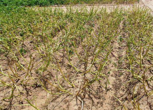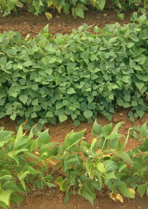 Under drought conditions, tepary beans (top) perform much better than common beans (bottom).