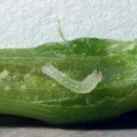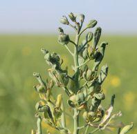 In canola, larvae debark pods, chew through to eat the seeds or can entirely consume pods when populations are high. Stripped pods may shatter prematurely, and crops can look white in colour. In flax, flowers and developing bolls are cut.