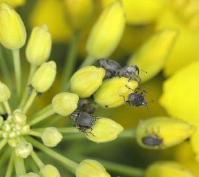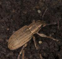 Females lay eggs in canola and brown mustard pods. The larvae feed on developing seeds causing infested pods to shatter or become distorted as the undamaged seeds mature. As the weevil emerges from a pod – the exit holes left allow fungal infections to set in and further reduce yield. Adults feed on developing flower buds, causing bud-blasting and can also be found feeding on pods in late canola crops.