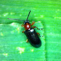Tetrastichus julis is an introduced parasitoid that has successfully kept populations below economic levels. CLB management efforts should be focused on maintaining this parasitoid. Disect mature CLB larvae to search for the presence of the small yellowish parasitoid larvae. T. julis prevents full development of CLB larvae into beetles but does not stop larval feeding. Lady beetles and damsel bugs also feed on CLB larvae.