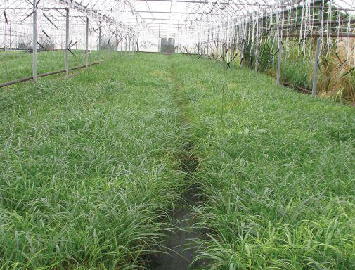 Miscanthus propagation in the greenhouse.