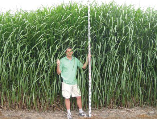 TOP AND ABOVE: Established miscanthus field at New Energy Farms (top). Dean Tiessen of New Energy Farms with tall miscanthus crop (above).