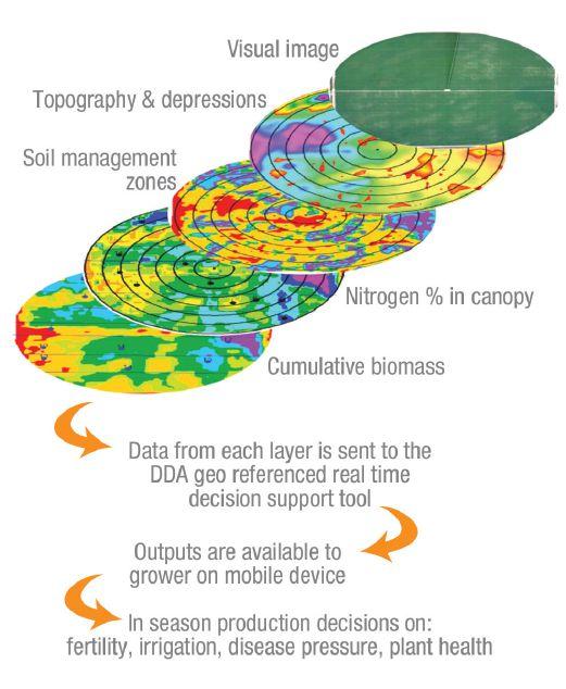 In 2012, the perry brothers did a trial run with one of their fields, using multi-spectrum images acquired through a variety of sources to determine when they irrigated and when they fertilized. They used two of the first full-scale variable rate irrigation systems in Canada and drove their nutrient prescription through that technology. While the trial field
