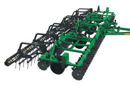 Patented hydraulic hitch transfers weight between front and rear disk gangs. Super-Flex™ C-shank mounting minimizes rock damage.