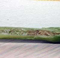 Corn leaf aphids suck sap from plants, causing stunted growth, curled leaves and reduced yield. Honeydew excretion can promote sooty mould growth, reducing photosynthesis. Adult and nymph Russian wheat aphids suck sap from leaves causing streaks between veins. Prevents normal unrolling, bleached heads and poorly formed grain.