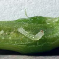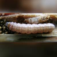 In canola, larvae debark pods, chew through to eat the seeds or can entirely consume pods when populations are high. Stripped pods may shatter prematurely, and crops can look white in colour. In flax, flowers and developing bolls are cut.