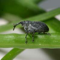 Depending on the current crop value, the threshold would be two to three or three to four adults per sweep. A price of $8.00 per bushel or beyond would warrant an application upon finding two adult weevils per sweep. Boot stage: One or more larvae per flag leaf.