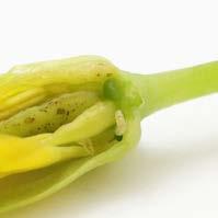 Take note of unopened (galled) flowers during flowering. Gently dissect damaged flowers to search for the yellow midge larvae. Larvae of canola flower midge will “jump” by coiling their ends together and releasing in a springlike action. Galled flowers are easily spotted amongst developing pods at the end of flowering, but larvae may have already exited the flowers by this time.