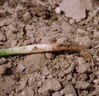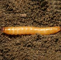 Larvae cause damage by feeding on germinating seeds and damaged tap roots of their preferred host crops. Damage worsens during cool weather and wet soil conditions.