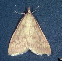 Adults feed on plants in the spring and again in mid to late summer, but they do not cause significant damage. Larvae, however, cause the most destruction. They start by feeding within stem for three to four days before moving to developing tips and buds and new leaves. The damage will cause the plant to take on a frosted appearance.