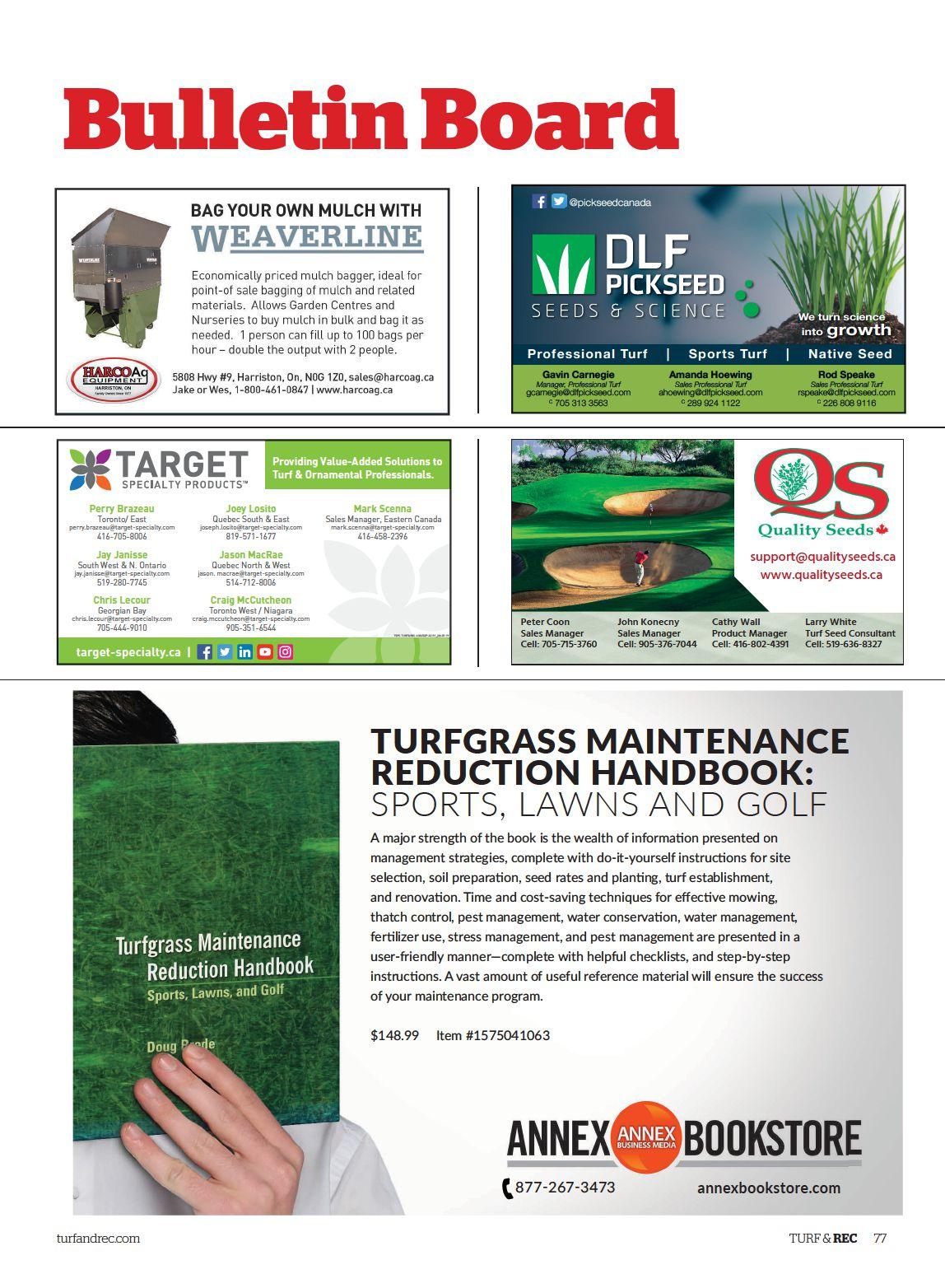 A directory of the turfgrass industry’s manufacturers, distributors, dealers and consultants, listed by province.
