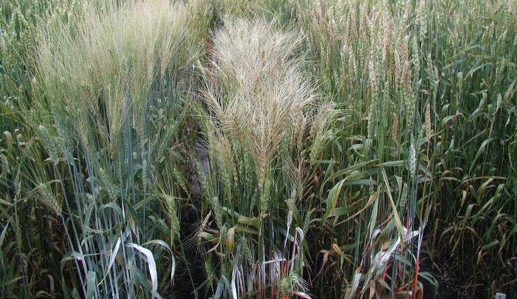 Fusarium head blight on susceptible check varieties in breeder plots.