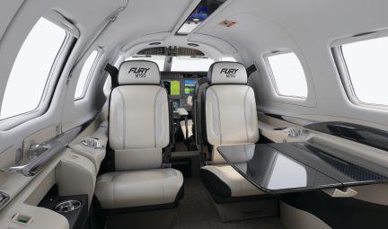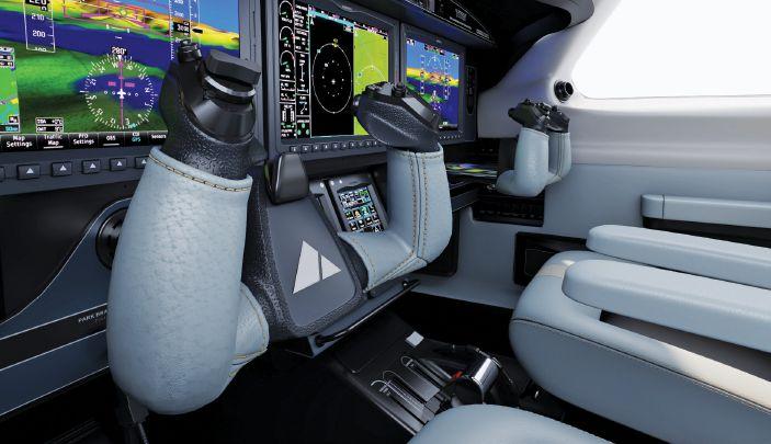 more interesting look. While the interior of a brand-new aircraft is luxurious (to say the least), passengers can easily get in and out of the aircraft thanks to the air stair. However, pilots are required to squeeze between the pilot and co-pilot seats and for some larger framed pilots, must be schooled in gymnastics, essentially turning their limber bodies into pretzels while squeezing between the two seats. However, once a pilot has accomplished this maneuver a few times, it will become second nature. For older and less nimble pilots, this may be an issue. The