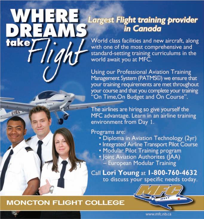 “Student throughput for our recreational and privatepilot students has remained fairly consistent in recent years, but there has been a drop-off in our commercial students, which we attribute to individual financial concerns as well as the booming Western Canada economy and the many job opportunities out here,” Holmes says. “Demand internationally for pilots seems to be at record levels, but Canadian visa requirements as well as insufficiently clear information regarding the level of fluency in English necessary for flight training in Canada are ongoing obstacles regarding our foreign students.”