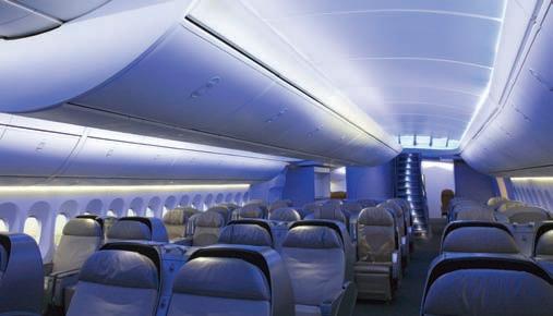 Many of the trade studies for the 747-8 Intercontinental focused on the airplane’s interior. The airplane will incorporate interior features from the 787 Dreamliner, including a new curved, upswept architecture that will give passengers a greater feeling of space and comfort, while adding more room for personal belongings.