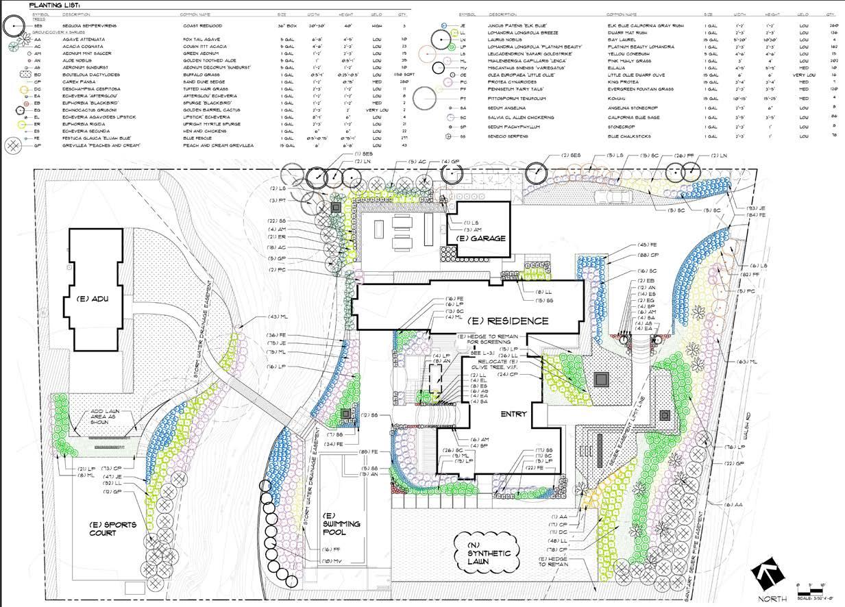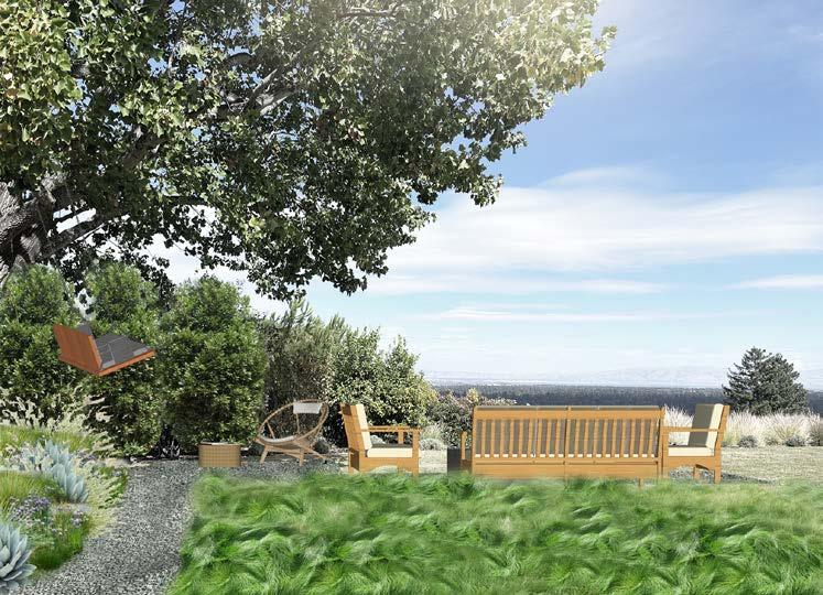 The landscape design encompasses the entire one-acre backyard, including a remodel of the existing pool to complement the new style of the house exterior. Special consideration is given to the hilltop location to optimize views of the bay, ensuring a seamless integration of the landscape with the surrounding environment.