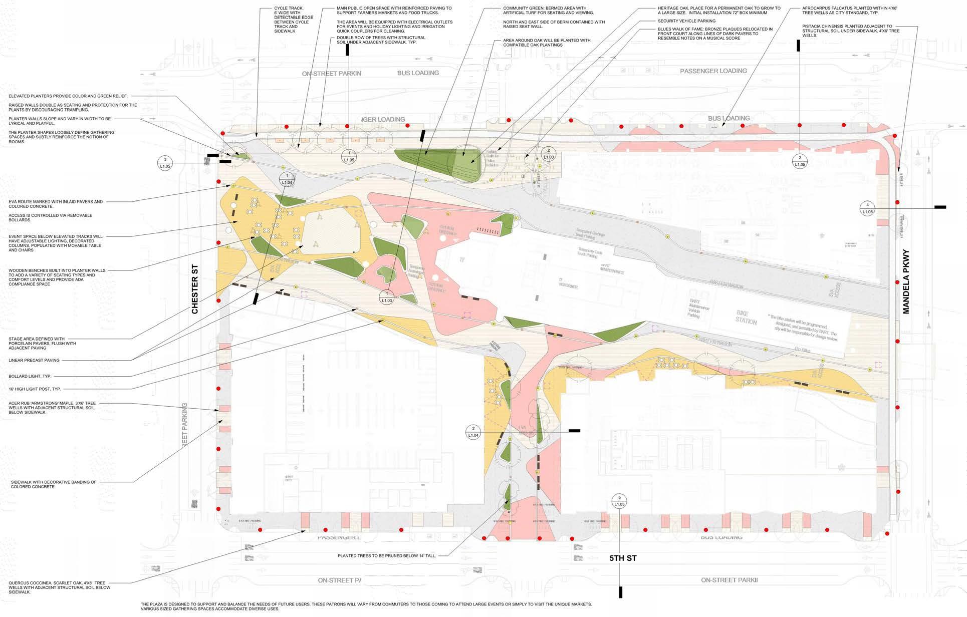 Project Information: The Mandela BART Station, also recognized as the West Oakland Station, is undergoing a transformative renovation project featuring the construction of three new mixed-use buildings and a vibrant plaza. The comprehensive design encompasses the creation of an inviting plaza space and innovative rooftop designs for the mixed-use buildings, aiming to revitalize the station area and enhance its functionality and aesthetic appeal.