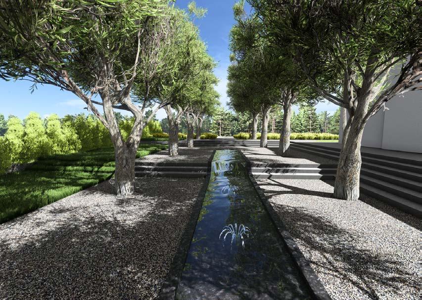 The monumental landscape design seamlessly complements the modern house design by providing a clean, neat, and sublime environment where the owner can rest, wander, or simply enjoy the landscape. While incorporating the design language of straight lines prevalent in most areas, the design also features meandering paths and a zen garden, introducing organic natural shapes for the owner to appreciate and engage with. This integration of elements creates a harmonious balance between the structured and the organic, enhancing the overall aesthetic appeal of the property and inviting moments of tranquility and contemplation amidst the surroundings.