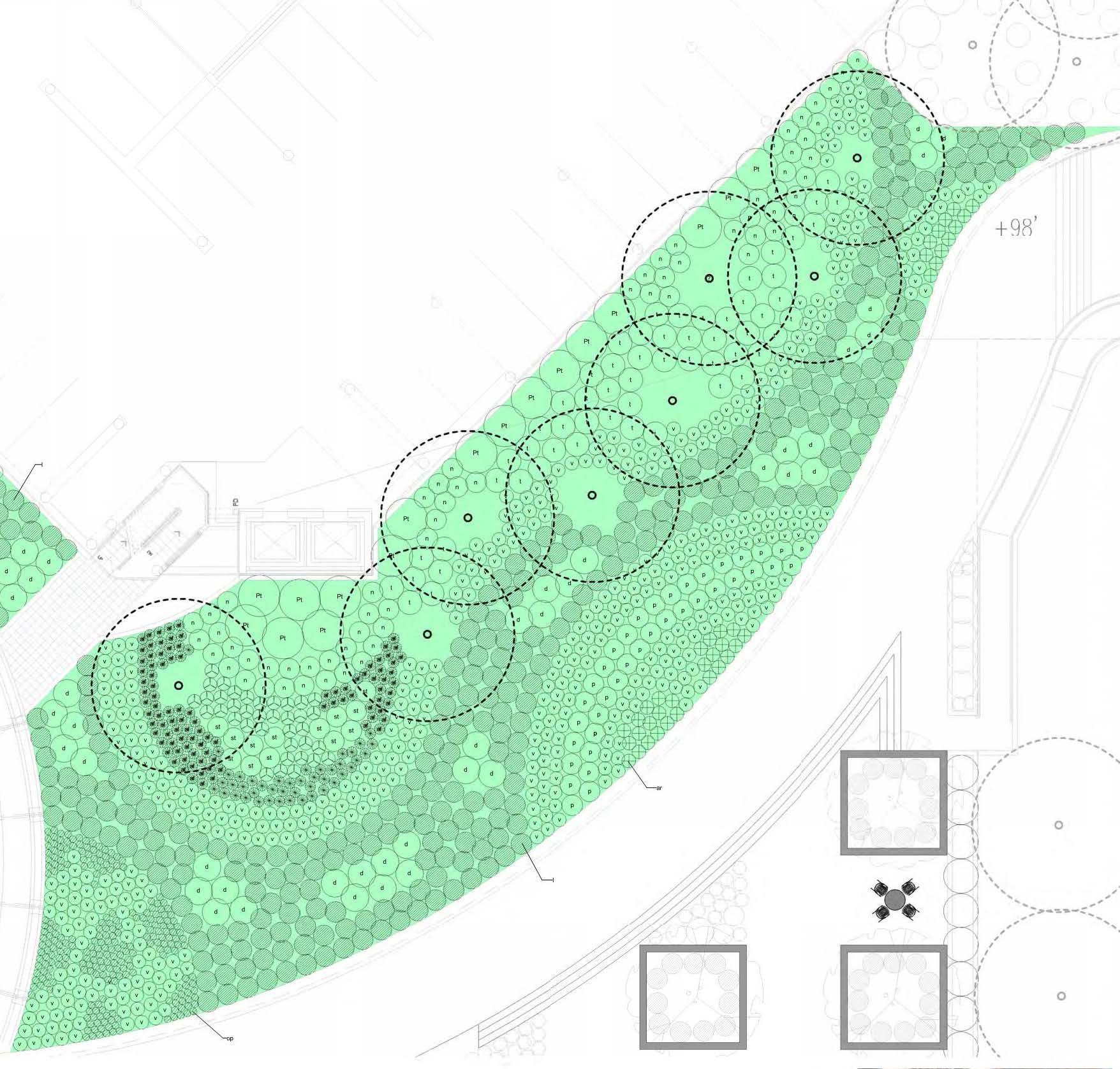 My concept aimed to create “bridges” on each side of the parkway, connecting the east and west sides. These “bridges” would serve as focal points for social activities, enhancing the park’s existing space.